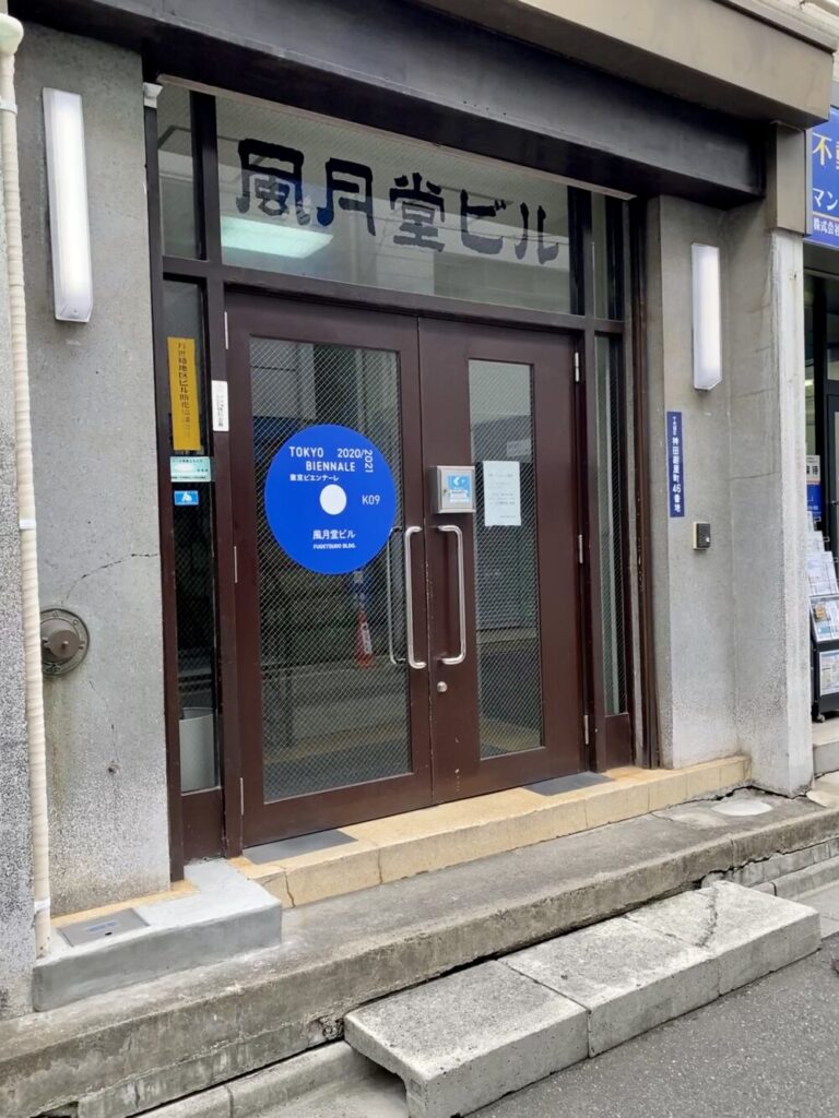 ビルの入り口。レトロな文字と雰囲気が象徴的。