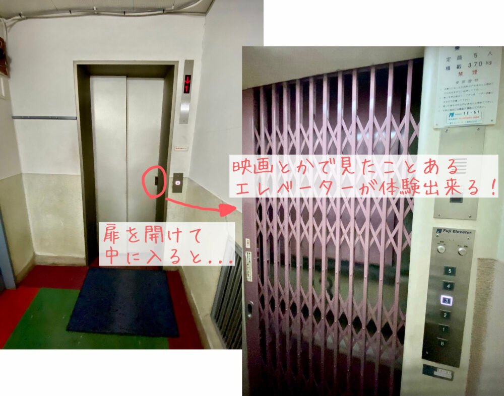 都内には多くの作業スペースが登録されている中で、なぜわたしがこの部屋を選んだのかというと、撮影に必要な機材が付いているというのも一つの理由ですが、もう一つの理由としては、映画でよく見る手動エレベーターがついているからです。今まで生きてきた中で手動エレベーターは乗ったことがなかったので是非乗ってみたいと思いました。
